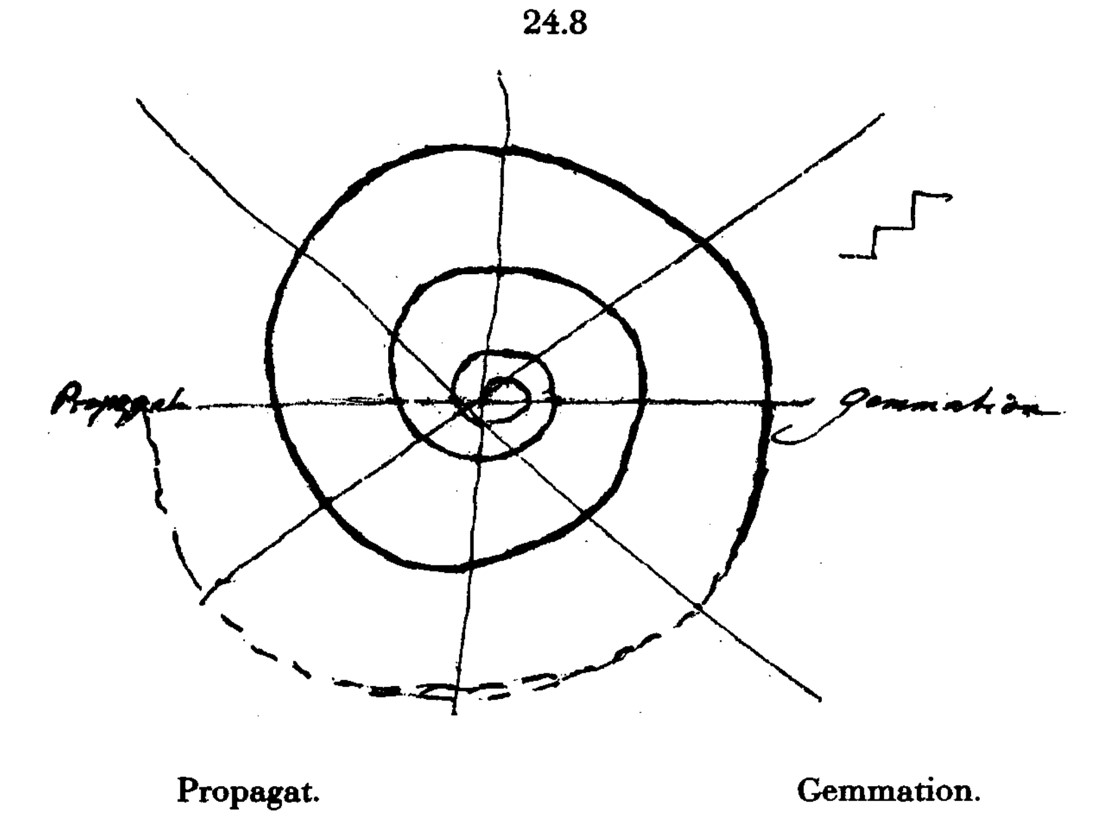 This work is informed by Johann Wolfgang von Goethe’s conception of morphology as a study of form through transformation rather than static classification. Goethe’s spiral functions as both a visual and methodological guide: growth occurs through return, variation, and accumulation, not linear progress.
